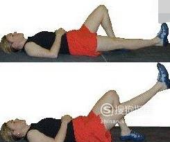 直腿抬高锻炼: 坐位或仰卧位,健腿屈曲,患肢关节伸展,足踝背伸,作直腿抬高,高度约足跟离床面约15cm,坚持10秒左右,然后在缓慢的放下。