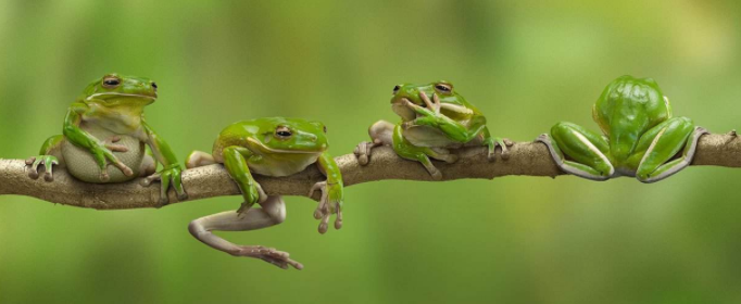 那么,为什么峨眉树蛙、大树蛙要到树上产卵,而有些树蛙,如杜氏树蛙、经甫树蛙,却不上树产卵呢?根据目前所掌握到的很不丰富的材料来看,可能与它们的后肢长短有关:凡后肢比较长的树蛙,一般都有上树产卵的习性。