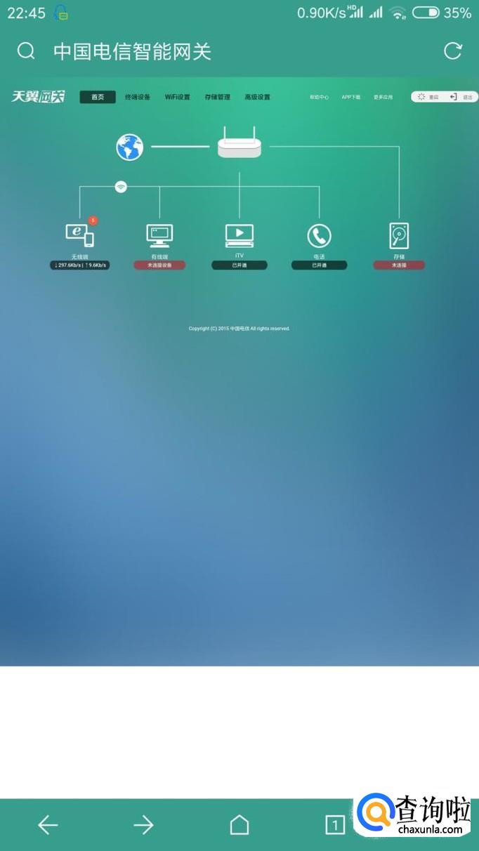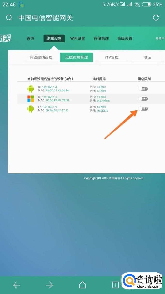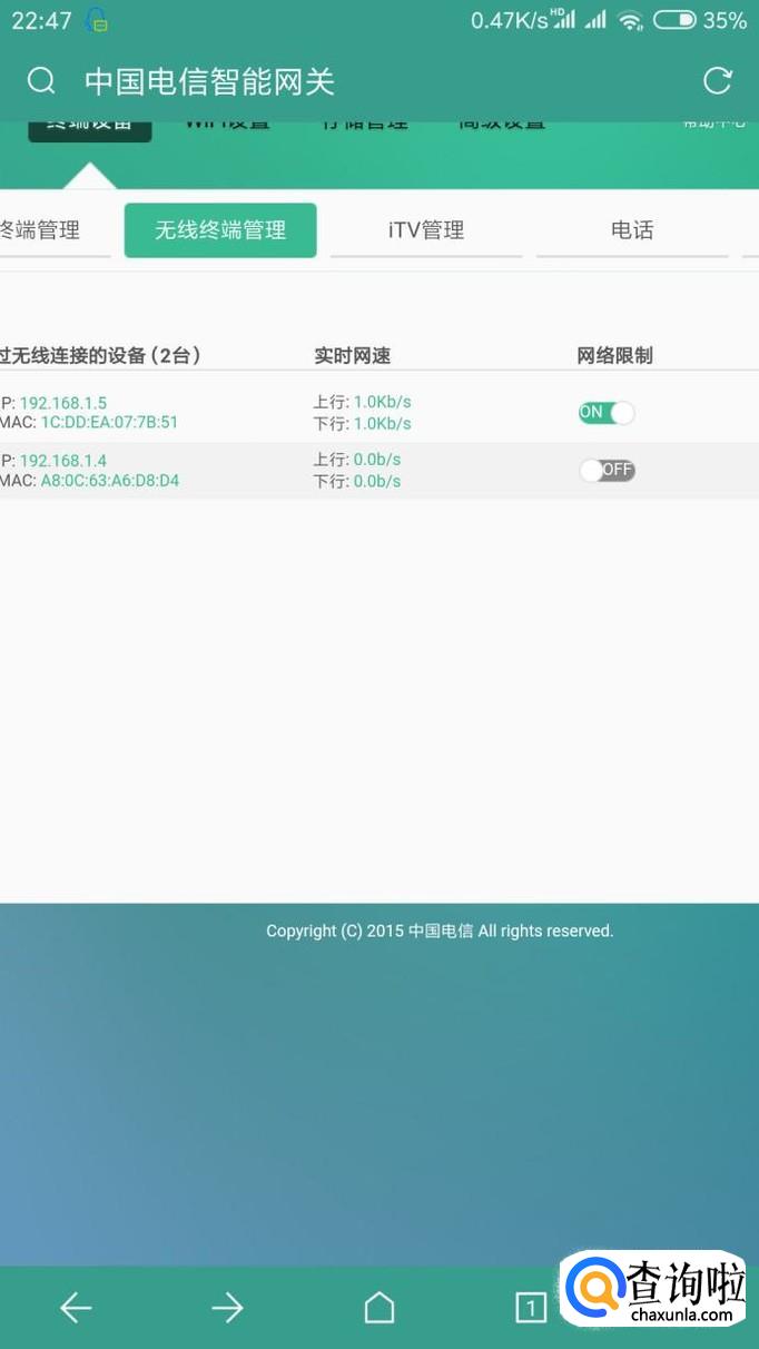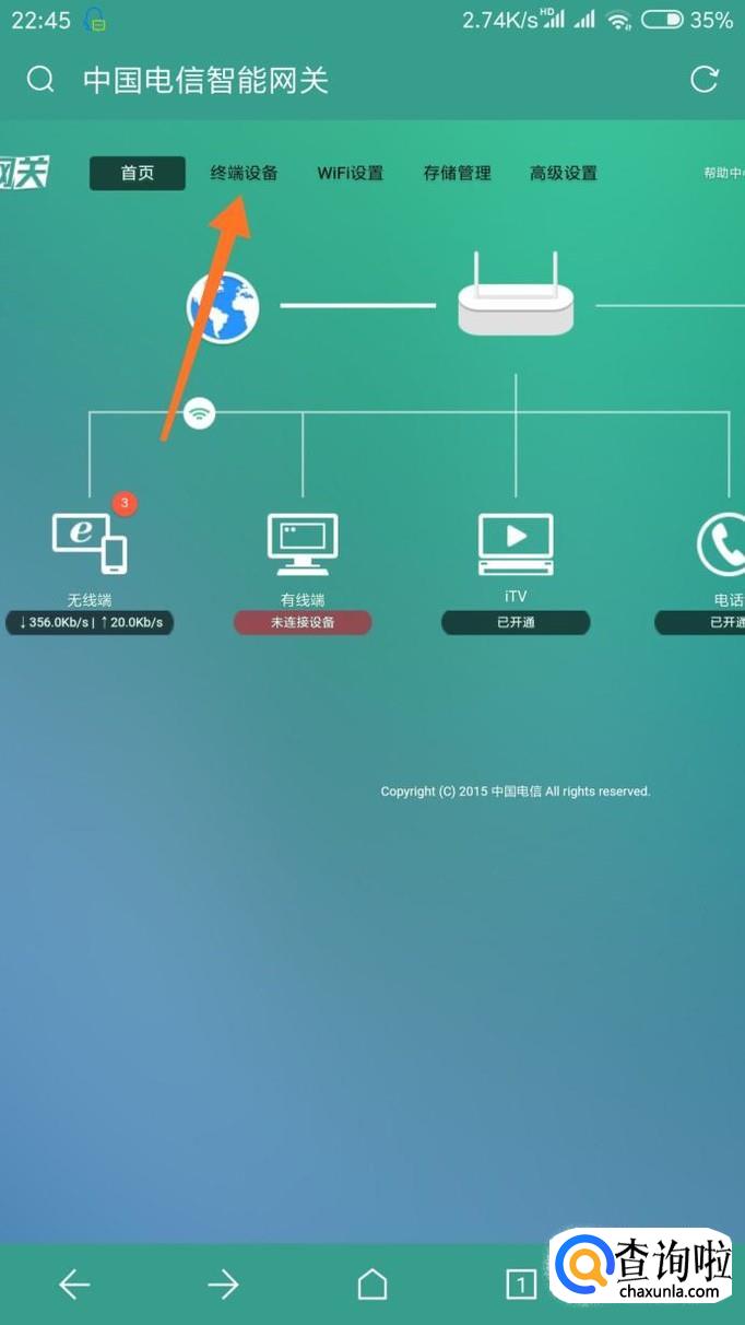 登录之后,点击首页右边的“终端设备”,即连接的设备。