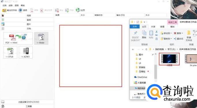 打开格式工厂,然后在电脑里找到你的视频,把它拖拽进如图空白区域。