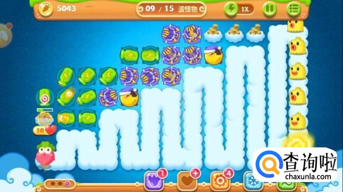 用这个方法,在第三关时就已经消除了两个瓶子炮塔了,小编的金钱也比较充足了,这时再继续慢慢的逐个清除掉钱袋。
