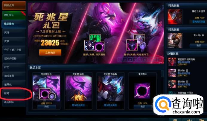 进入商城界面之后。会看到很多的分类,接下来只需要点击账号即可