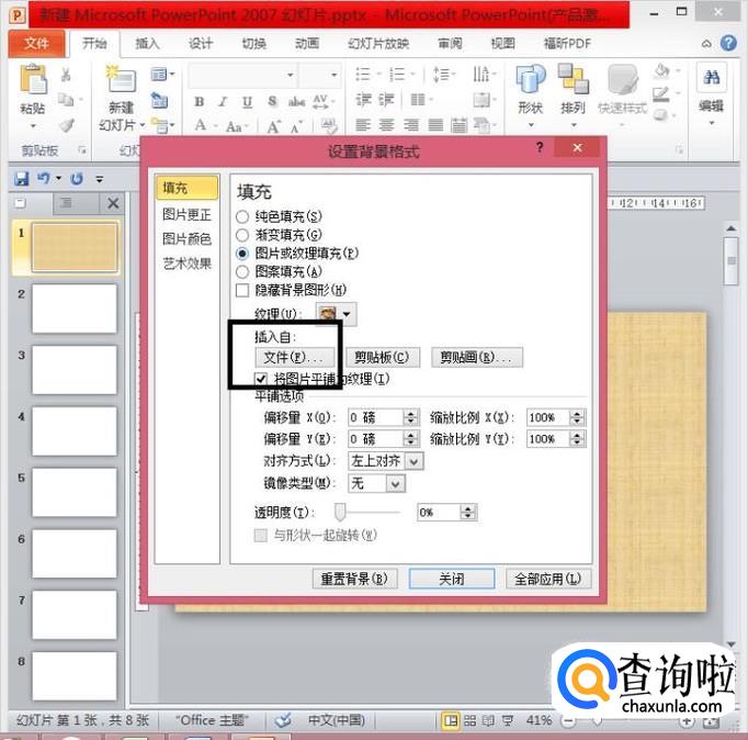 在弹出的对话框中,点击“图片或纹理填充”