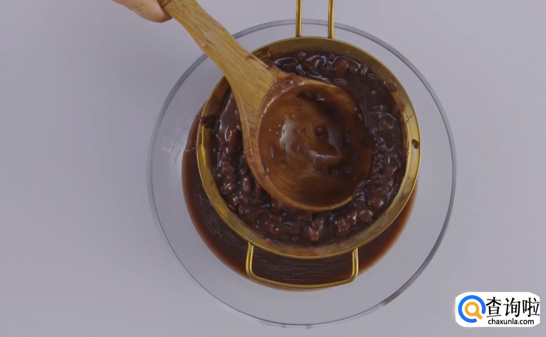 将熬制好的红豆过筛,轻压滤出红豆沙。