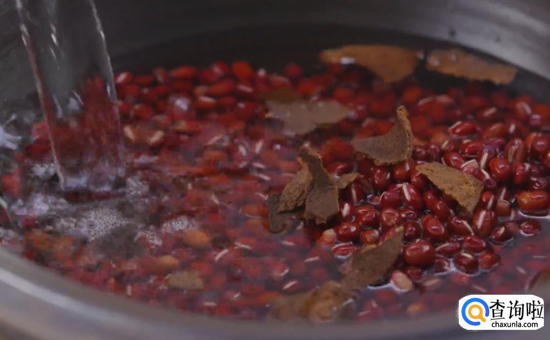 红豆、陈皮下锅,倒冷水;大火煮半小时后,转小火熬2小时。