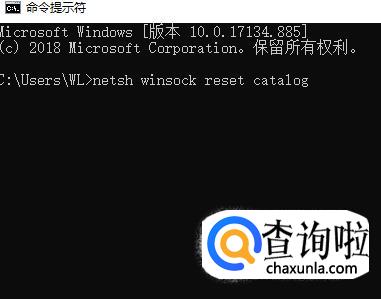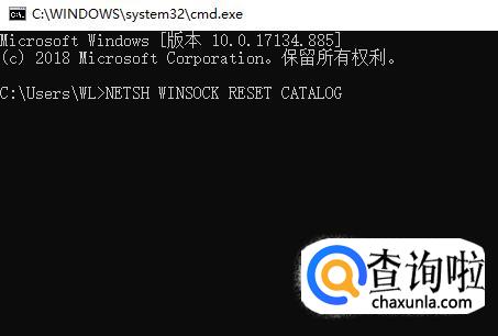 在命令里输入NETSH WINSOCK RESET CATALOG,按回车键。