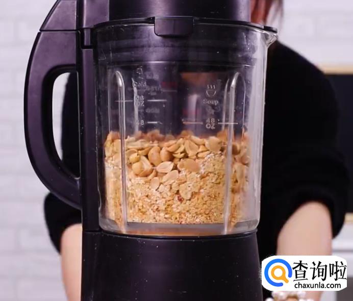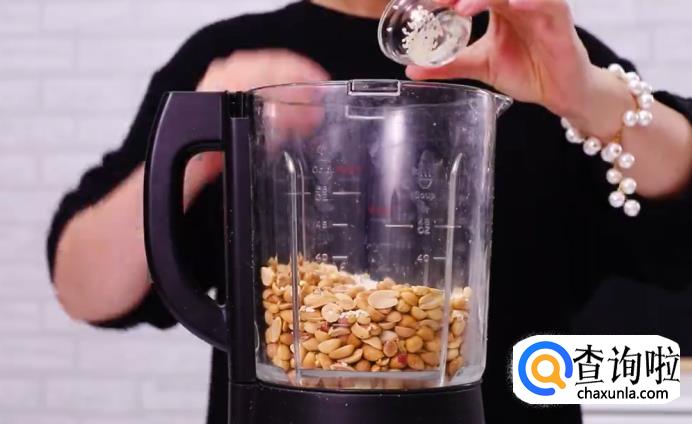 将花生和白芝麻倒入料理机。
