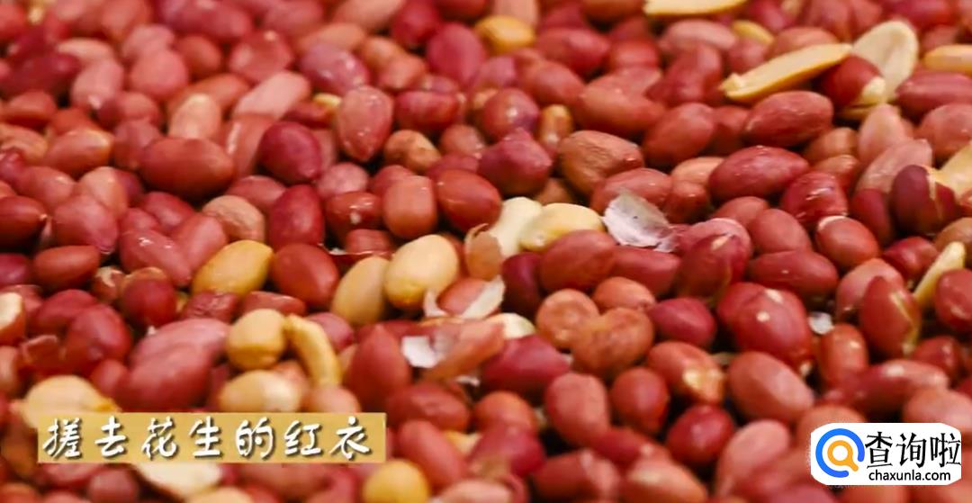 将烤好的花生搓去红衣。