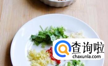 先把豆腐洗干净切成块状,把香菜、大蒜、辣椒、生姜清洗干净,一起切成碎末状,然后分别装在盘子里面。