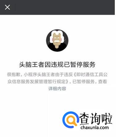 但近日却不能登录头脑王者,原因是被微信小程序给封了,究其原因,微信官方在相关公告中提及,是因为头脑王者的题目审核不严谨,无益于游戏;