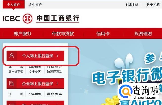 首先,我们需要进入工行的官网,进入后,点击“个人网上银行”登录。