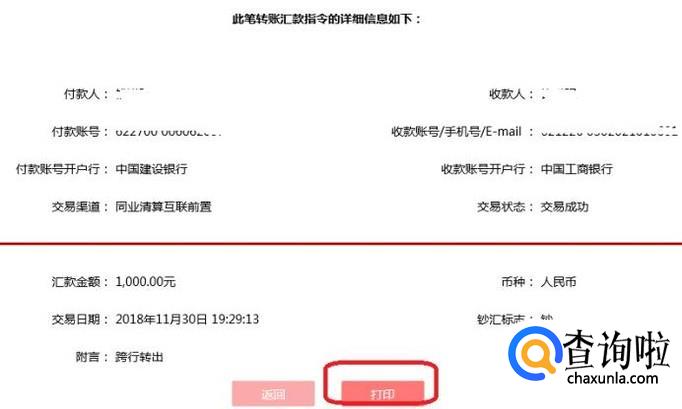 回执单详情如下图所示,我们点击“打印”,即可打印回执单。
