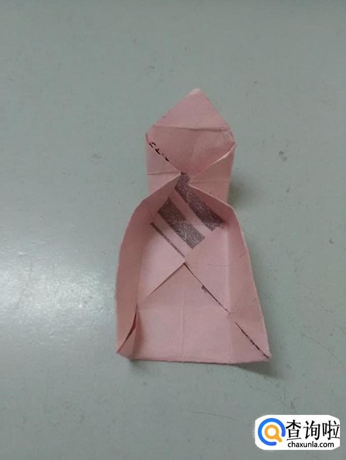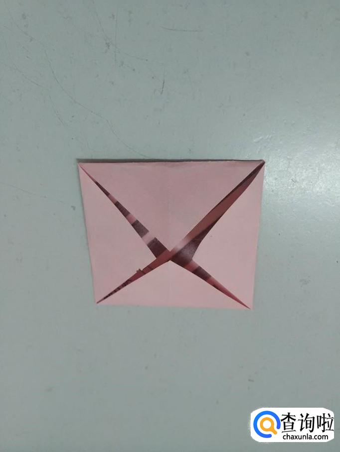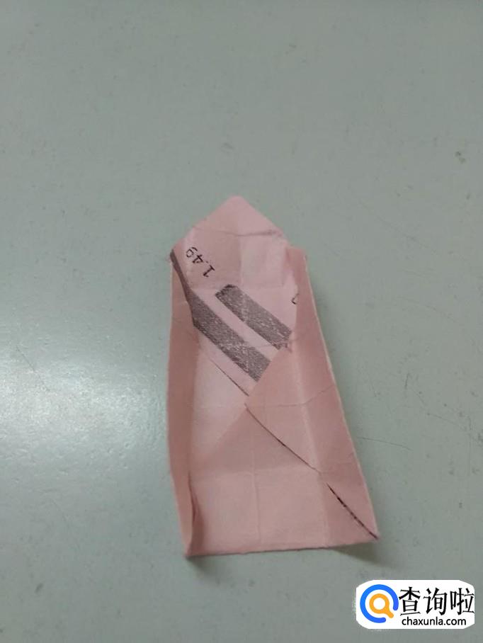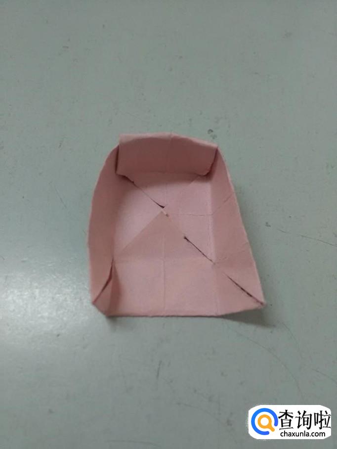 把上方的角盖下来,压住左右两角,然后在底部按平。