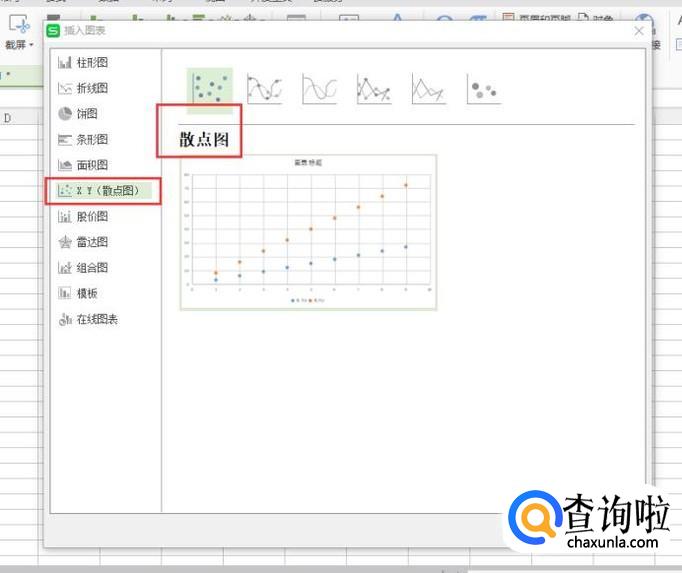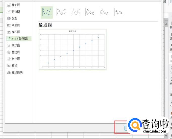 在X Y(散点图)中,选择【散点图】,然后点击【确定】。