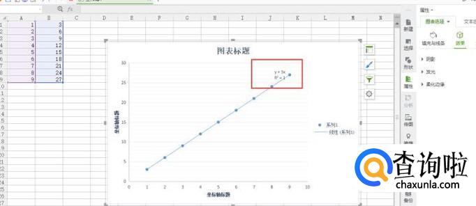 现在我们再看图标,看到一个y=3x的公式,所以斜率就是3