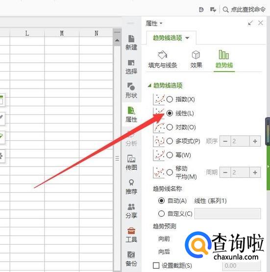 点击散点,然后右击【散点】,然后选择【添加趋势线】,出来后选择【线性】