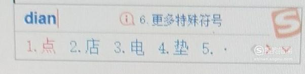 同样的我们也可以在输入法的中文状态下输入dian,也可以找到点。