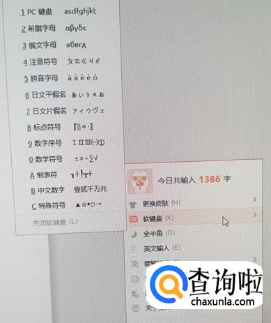 同样以搜狗输入法为例。把鼠标光标放在搜狗输入法的标题栏上面,右击鼠标键,电脑会弹出一个窗口,在选择页面中单击“软键盘”就可以开启软键盘功能。