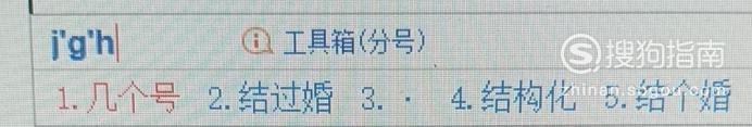 前面我们也介绍过圆点的学名叫做间隔号,所以在输入法的中文状态下输入jgh三个字母,我们就可以看到第3就是一个点,我们单击选择即可。
