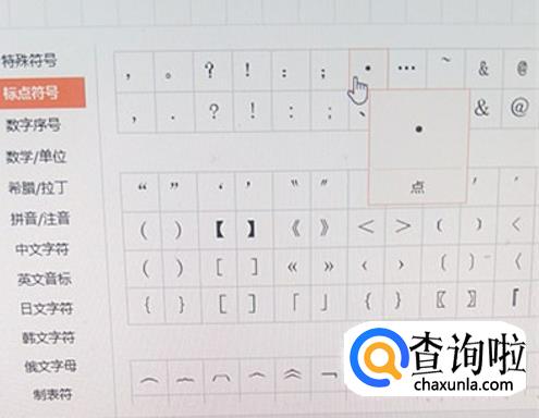 这个点学名叫做间隔号(搜狗中叫点),我们可以在标点符号中找到它,点击它后我们的文档中便有了圆点。