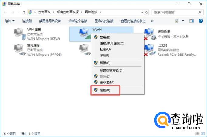 弹出的界面,我们右击我们连接的网络,弹出的界面,我们点击属性;