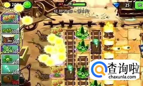 此外,在淘金僵尸出现之前,将双向射手进行布置,等待巨人出现之后使用能量豆来进行攻击。