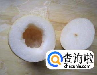 梨洗干净,用刀切下顶部,再用勺挖去内核,最好再挖去一些果肉。放于盘中备用