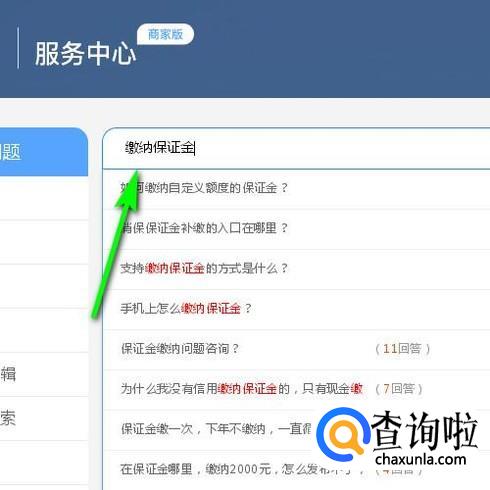 弹出的页面中,在搜索框内输入关键词:缴纳保证金 ;再点搜索。