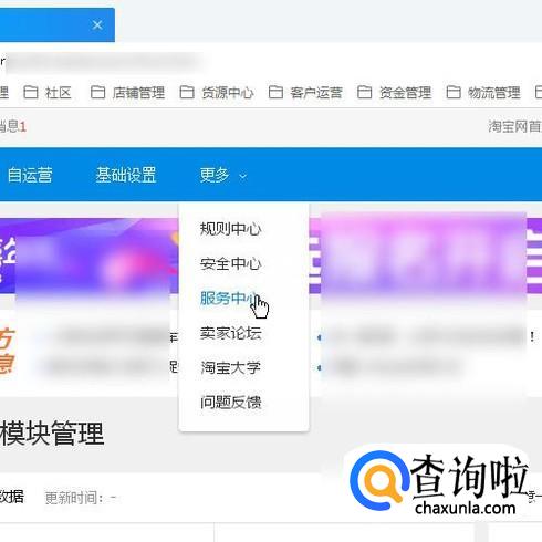 要查询自己店铺商品所属类目需要交多少保证金,可以在卖家中心这里,如图所示,点击更多的下拉按钮,弹出下拉菜单中再点:服务中心