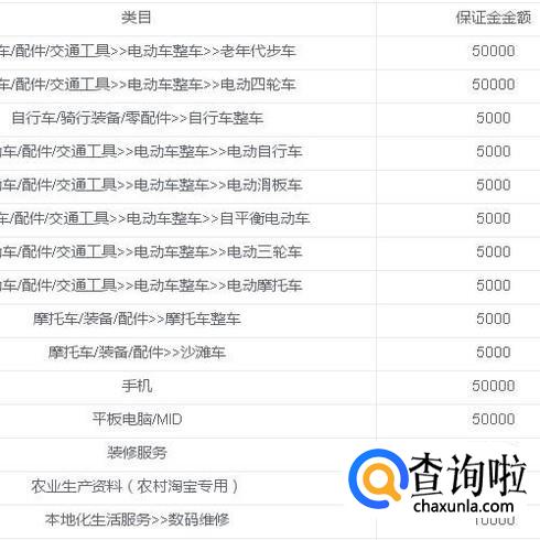 比如,童装类的最低缴纳保证金1000元;又比如,电动车类的最低要缴纳50000元