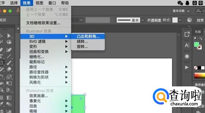 矩形绘制完成之后,在上方菜单中选择“效果-3D-凸出和斜角”