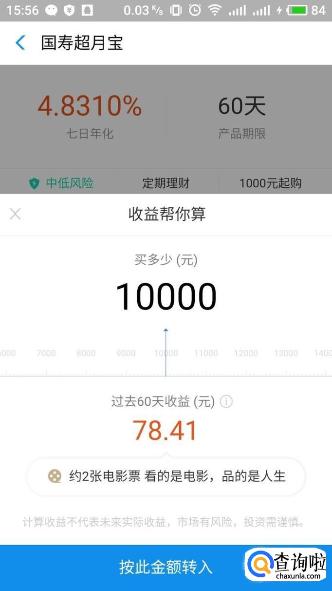 此外,在支付宝中还能够快速根据购买金额来计算收益。