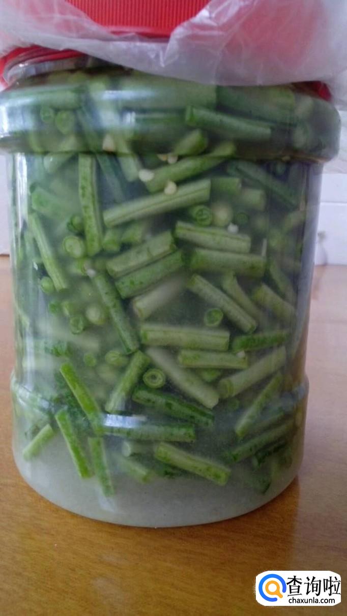 最后把排干水的豆角和盐水一起倒入密闭性比较好的玻璃容器里面腌制,腌制一段时间就可以食用了,喜欢辣的朋友我可以加入一些小米椒。