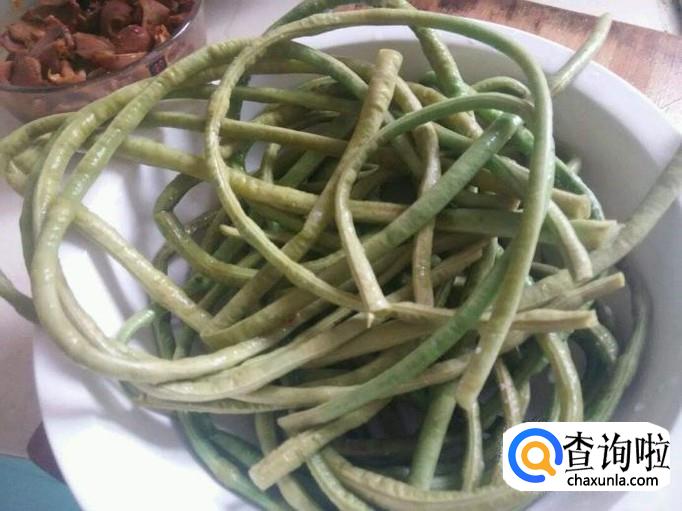 首先我们需要把豆角的豆筋去除掉后用清水清洗干净,如果豆角太长的话我们可以切小一点,然后用盐腌制豆角让其排水。
