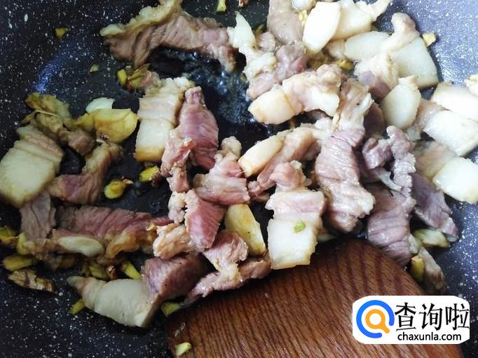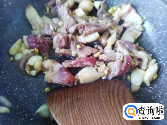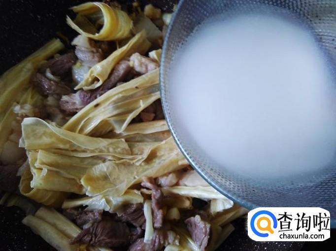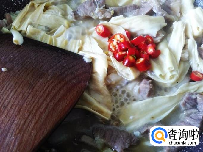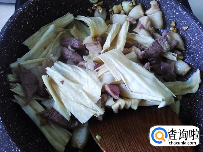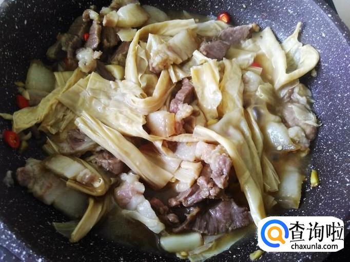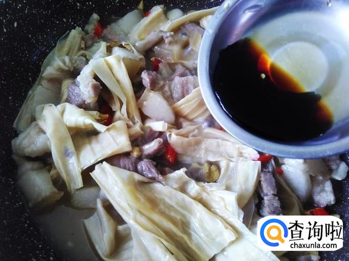 翻炒一下焖1分钟左右,熄火。非常美味的腐竹炒猪肉就做好了。