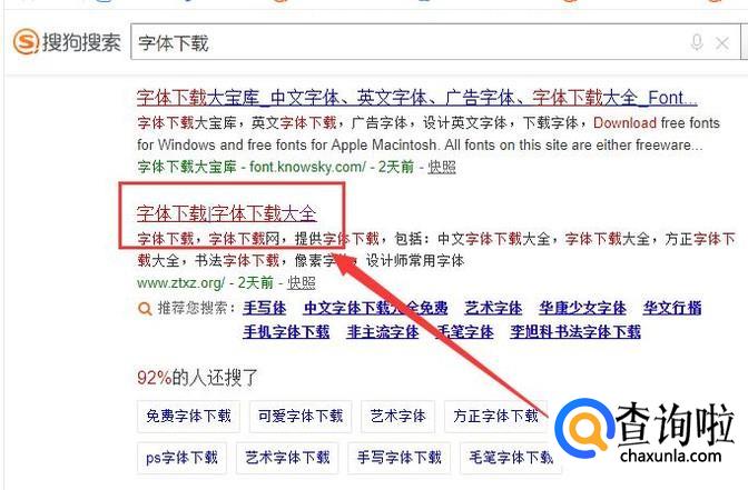 在搜索栏中搜索“字体下载”,点击连接并进入,如图所示。