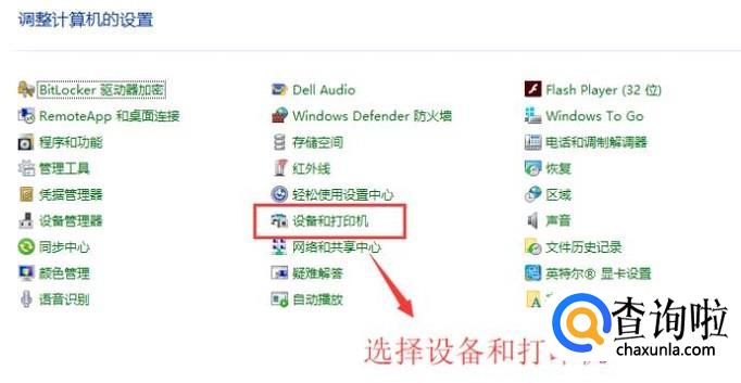 首先进入控制面板找到设备和打印机选项,如下图所示