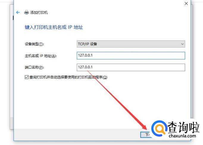 接下来会让我们输入打印机的IP地址以及端口号,我们正确输入点击下一步即可,如下图所示