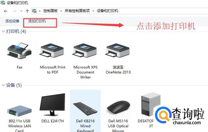 进入设备和打印机界面以后,我们点击顶部的添加打印机按钮,如下图所示