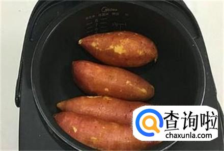 电饭锅底部可以用刷子刷一层油,也可以不刷,这个随便你。将红薯整齐的码放在电饭锅里。