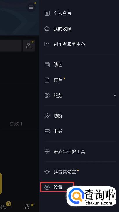 点击之后弹出菜单页面,在底部有一个【设置】功能,点击进入。