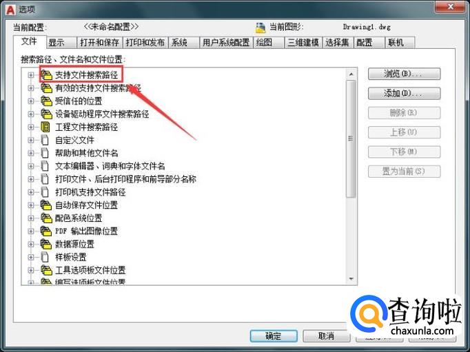 点击支持文件搜索路径选项在其内找到我们的填充图案,然后再找到添加选项,之后点击确定我们就将图案加载进来了,如图所示: