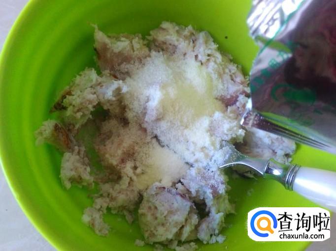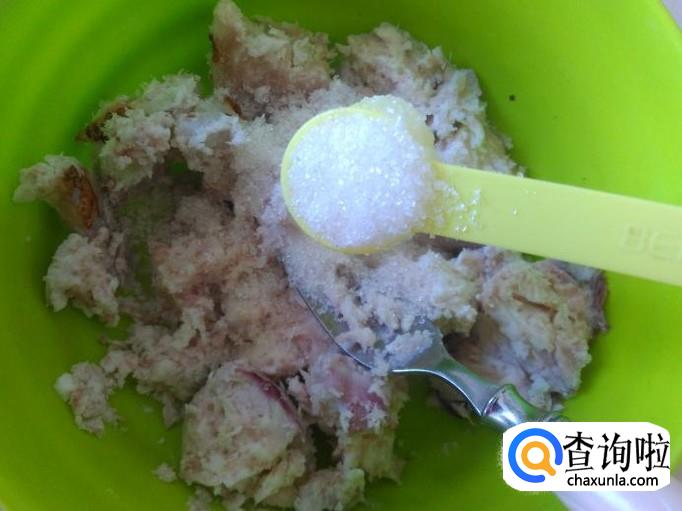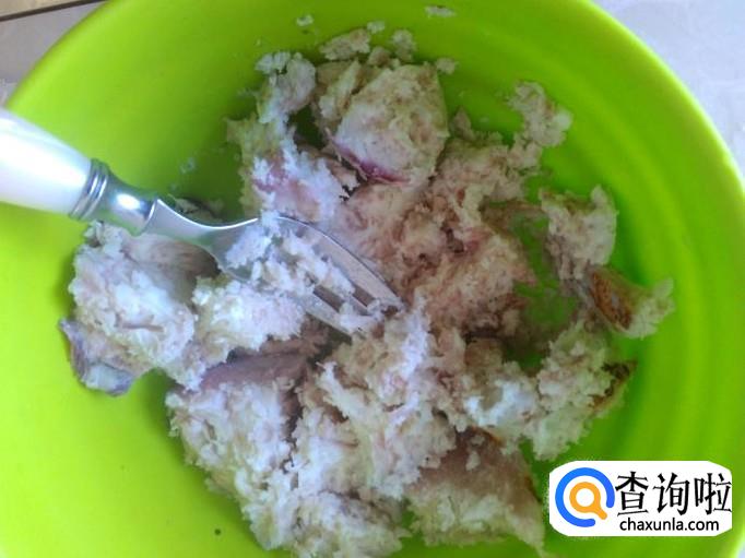 拿出来把皮去掉,然后用叉子压成粉泥。