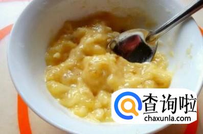 将香蕉果肉用勺压成这种泥状。