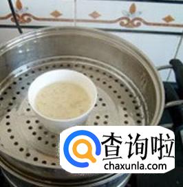 将搅匀后的液体倒入碗中,放在蒸笼上,大火蒸熟。