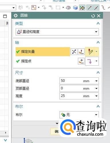 完成以上参数设置,点击“确定”就可以生成一个圆锥体。