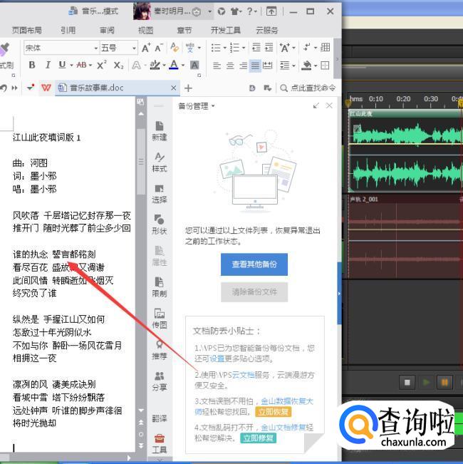 下面就是准备歌词啦,录制歌曲之前最好先准备一个写有歌词的文档,方便你录制的时候发挥。