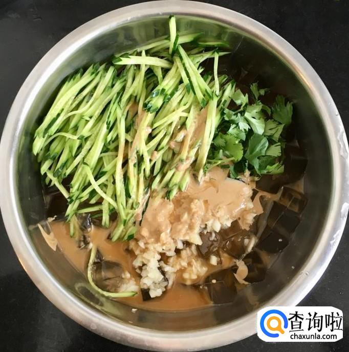 黄瓜,凉粉,蒜,芝麻酱,味极鲜酱油,盐,白醋,香菜等等
