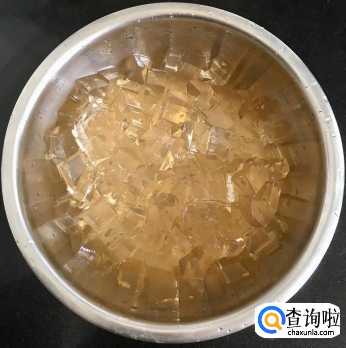 凉粉750克左右,用凉水冲洗一下沥干水分后切成大小均匀的小方块备用