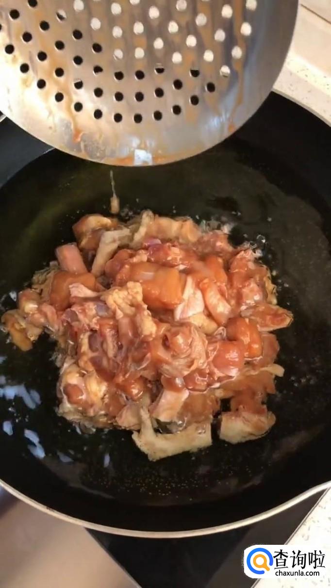 然后把炸好鸡肉捞出沥干,如下图所示。